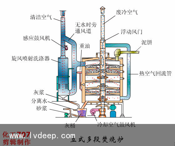 立式多段焚燒爐 ?多段立式焚燒爐結構緊湊,操作彈性大,適用于各種污泥的焚燒處置懲罰多段爐的污泥自上而下進行干燥和焚燒,焚燒后的氣體在爐內上升,在頂部與處于干燥階段的含水率為65%一75%的泥餅逆向接觸,對氣體起到一定脫臭作用。